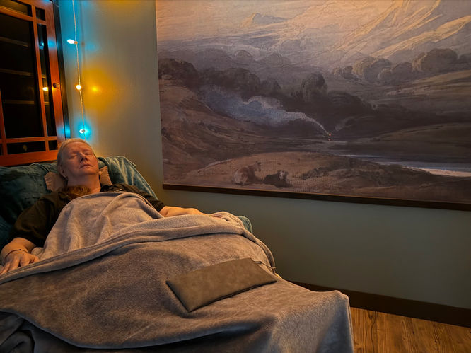 Many clients experience a deeply relaxed, parasympathetic “rest and restore” state during treatment—often feeling warmth, tingling, or a gentle floating sensation.